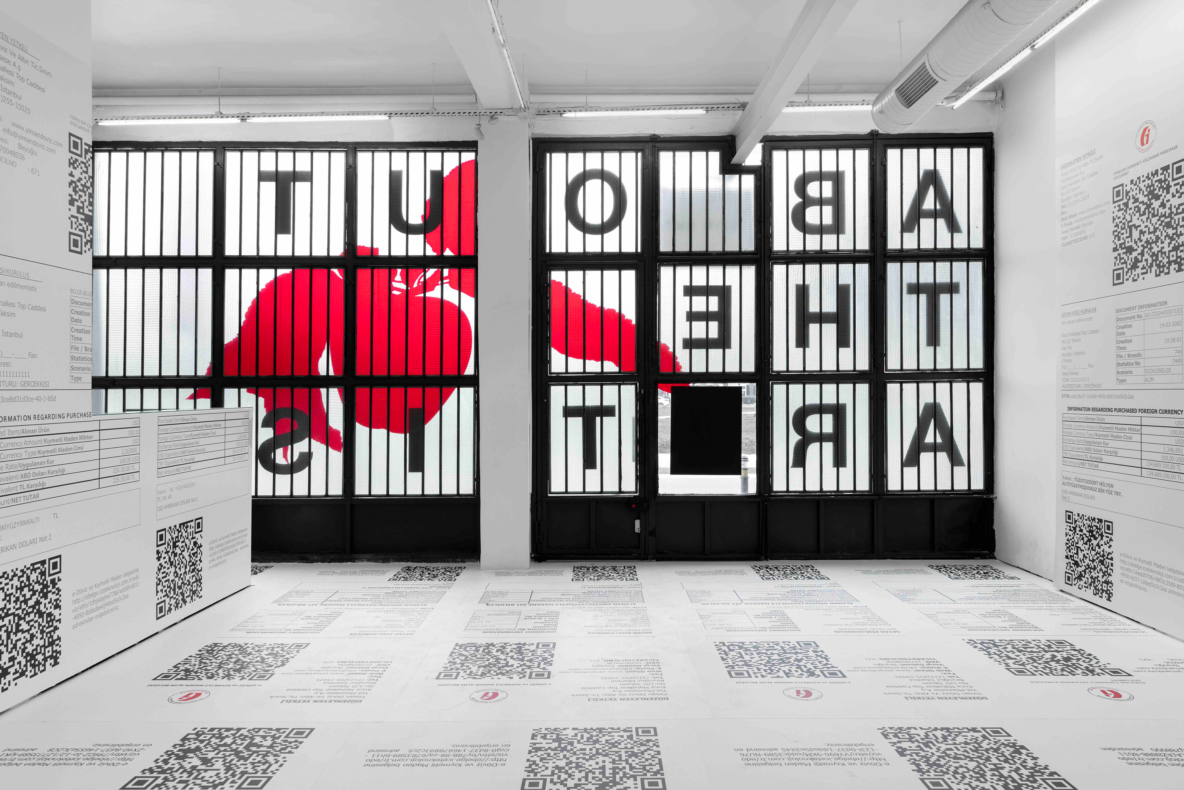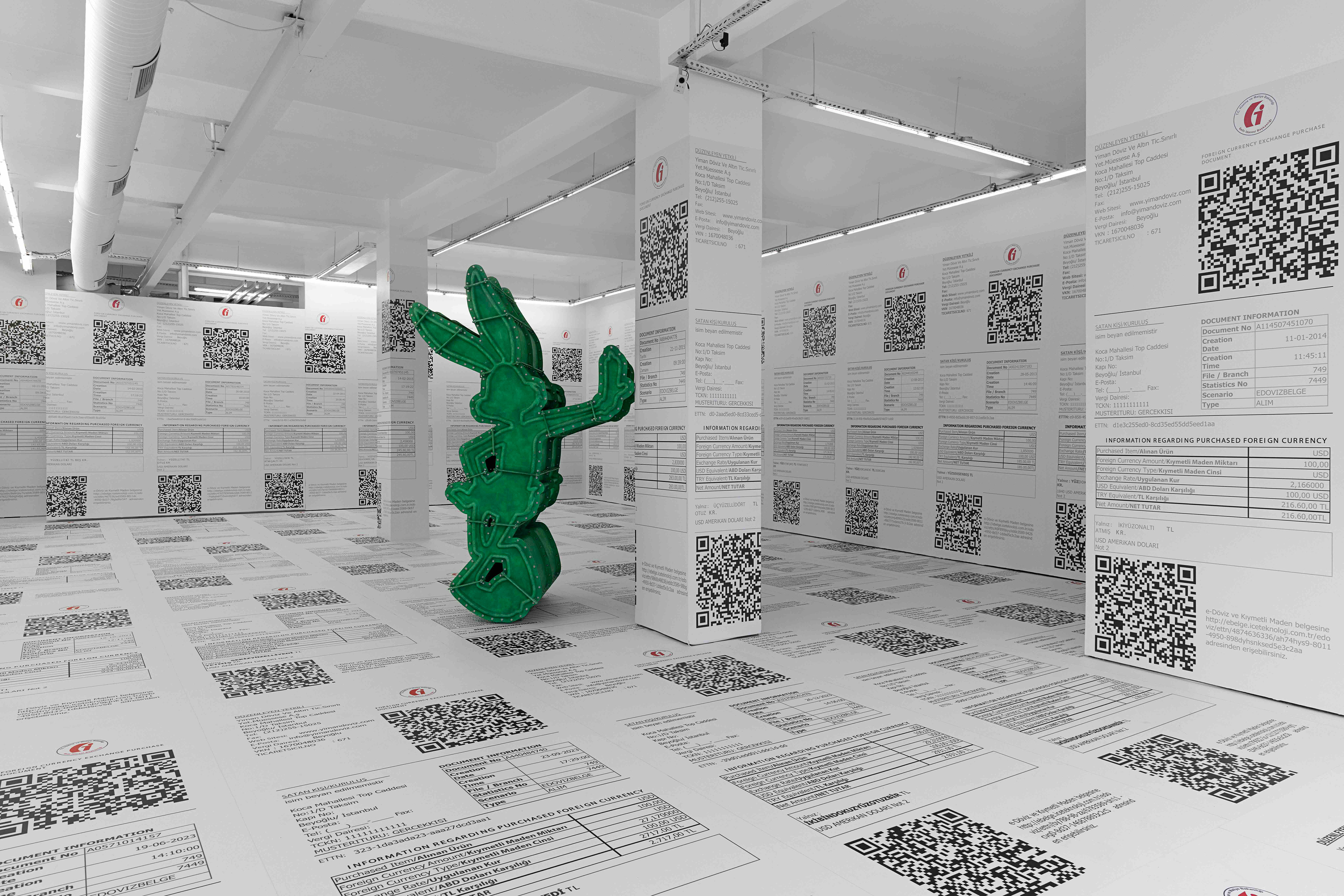 The frame, setting the boundary of representation, simultaneously stabilizing and setting in motion both the work of art and the labor of living, constitutes the object of inquiry in ABOUT THE ARTIST. This time, alongside the institutional framing of art, it is the larger institutional frames governing our lives that are at stake. As Bugs Bunny shifts from a silhouette into a fiberglass mold in “toxic green”, Irem Günaydın insists on its grotesqueness as a figure in blown-up scale, opening a discussion around the artist-as-activist, reduced to an inconvenience that must be contained by operations of minimizing. What Irem Günaydın chooses to upscale in the site-specific installation Weather Report is precisely that which is minimized in the hopes that it would disappear through the cracks of institutional discourse. And this organized amnesia is precisely what 75 foreign exchange tickets chosen from the last 24 years and blown up into an architectural scale is here to defy. The immersive environment urges us to remember and to confront, through this precision, the making of our current conditions of existence through the evidence - a counter-archive - displayed in a dizzying scale: the diminishing value of our smallest common denominator. And this covers everything from currency to social contract.
