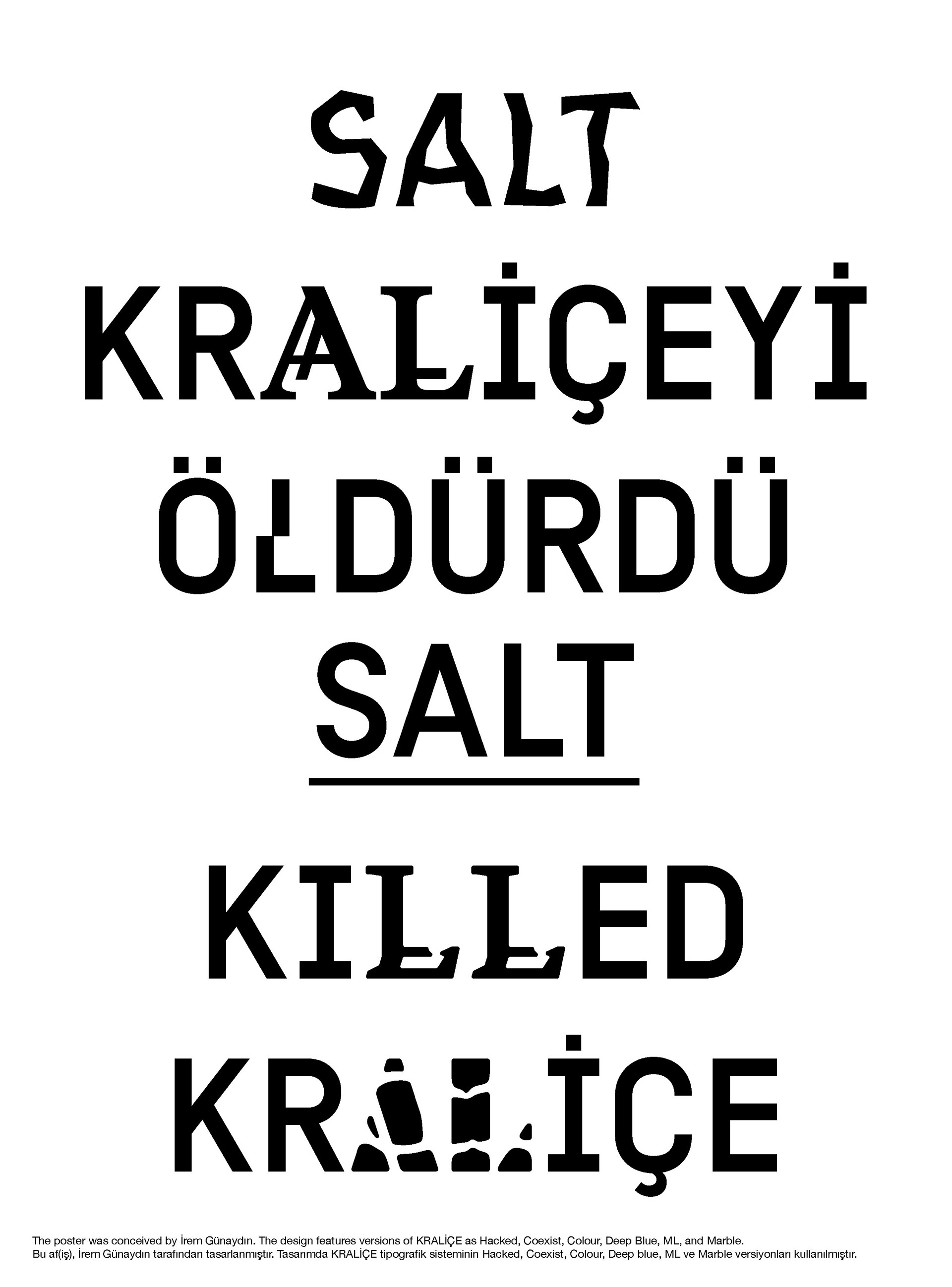 The front of the poster employed the Kraliçe typographic system, a modular and unstable letterform structure I developed in response to SALT’s experimental visual identity known as “Kraliçe.” In this composition, typography operates as structure rather than decoration: institutional clarity and typographic mutation coexist, fracture, and reorganize each other.